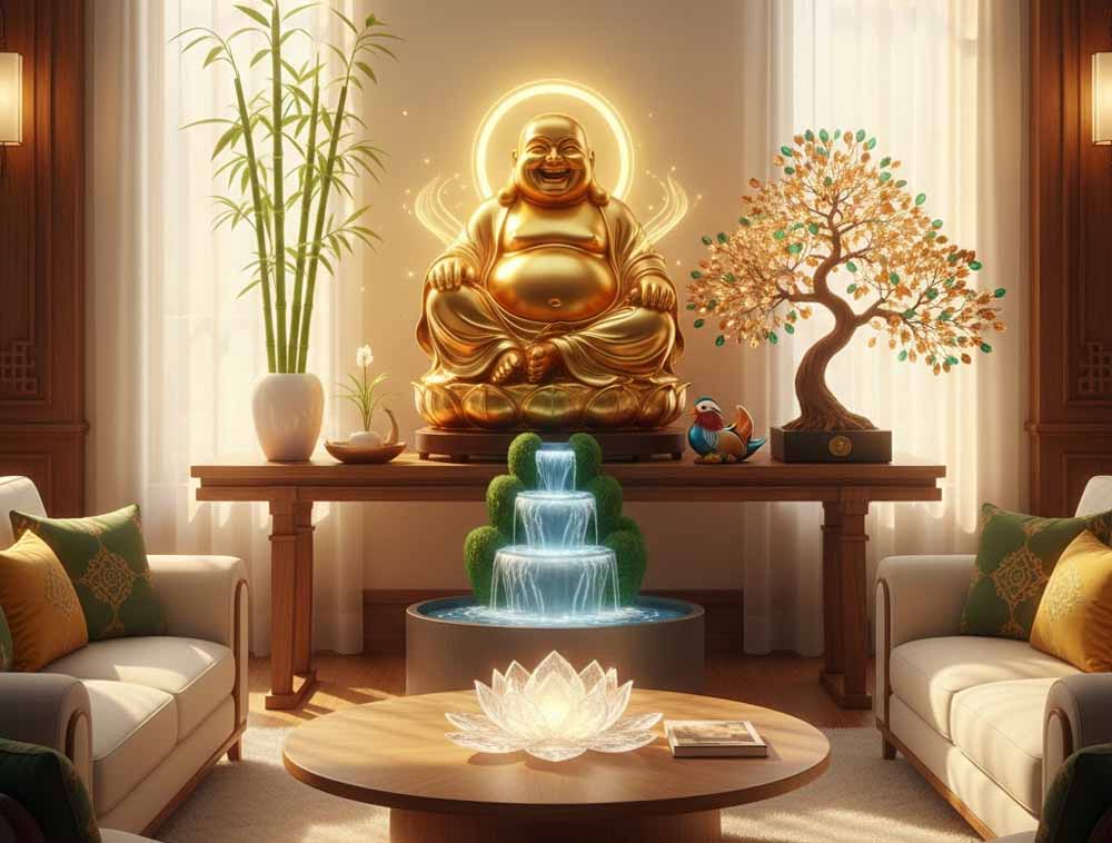 फेंगशुई में बहते पानी को धन के प्रवाह से जोड़ा जाता है। इसे घर की उत्तर या उत्तर-पूर्व दिशा में लगाना चाहिए। यह आर्थिक स्थिति को मजबूत करती है और घर में पैसे की बरकत लाती है। सुनिश्चित करें कि चित्र में पानी का बहाव घर के अंदर की तरफ हो, बाहर की ओर नहीं।