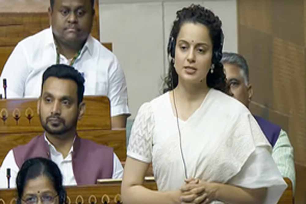 हिमाचल प्रदेश की मंडी संसदीय सीट से नवनिर्वाचित सांसद कंगना रनौत ने शुक्रवार को लोकसभा में अपना पहला भाषण दिया। इस दौरान उन्होंने बजट और केंद्र सरकार की योजनाओं पर प्रमुखता से अपने विचार रखे। कंगना ने कहा कि दस साल पहले भारत की अर्थव्यवस्था 11वें पायदान पर थी, जो अब 5वें नंबर पर आ चुकी है। कंगना ने अपने भाषण की शुरुआत नरेंद्र मोदी के तीसरी बार प्रधानमंत्री बनने पर बधाई देते हुए की। उन्होंने कहा कि मैं पहली बार हिमाचल की मंडी सीट से सांसद चुनकर संसद पहुंची हूं। मुझे इस बात का एहसास है कि 18वीं लोकसभा कोई आम लोकसभा नहीं है। नरेंद्र मोदी लगातार तीसरी बार प्रधानमंत्री बनकर पिछले 60 सालों का रिकॉर्ड तोड़ा है मैं उन्हें बधाई देती हूं।