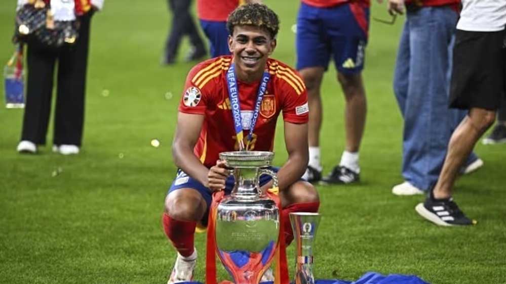 स्पेनिश अटैकर लामिन यामल किसी बड़े अंतरराष्ट्रीय टूर्नामेंट के फाइनल में खेलने वाले सबसे कम उम्र के पुरुष फुटबॉलर बन गए हैं। वह यूरो 2024 फाइनल में स्पेन की टीम का हिस्सा थे। यूरो 2024 के फाइनल मैच में स्पेन ने ओलमियास्टेडियन बर्लिन में इंग्लैंड को 2-1 से हराकर खिताब अपने नाम किया।