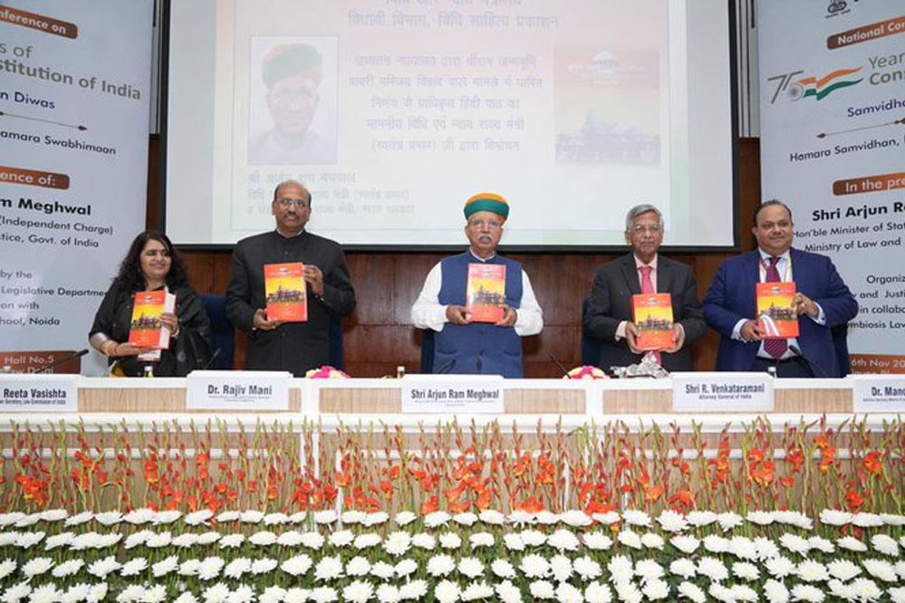 कानून मंत्री अर्जुन राम मेघवाल ने 75वें संविधान दिवस के मौके पर सुप्रीम कोर्ट के राम जन्म भूमि फैसले का हिंदी संस्करण जारी किया है। 2019 में सुप्रीम कोर्ट की पांच जजों की बेंच ने राम जन्मभूमि पर ऐतिहासिक फैसला सुनाया है। इस फैसले का हिंदी संस्करण कानून एवं न्याय मंत्रालय के अंतर्गत विधि साहित्य प्रकाशन द्वारा किया गया है। इस मौके पर सरकार ने भारतीय संविधान पर एक ऑनलाइन पाठ्यक्रम की भी घोषणा की है।