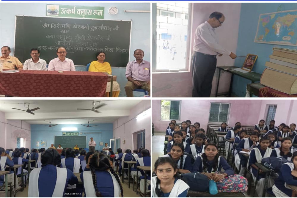 साहित्य जगत की दो महान विभूतियों—गोस्वामी तुलसीदास और मुंशी प्रेमचंद की जयंती पर शासकीय कन्या उच्चतर माध्यमिक विद्यालय, शिक्षा विभाग मनेन्द्रगढ़ में एक भव्य साहित्यिक आयोजन संपन्न हुआ। इस अवसर पर विद्यालय परिवार ने श्रद्धा, सम्मान और प्रेरणा के साथ इन दोनों महापुरुषों को स्मरण किया और उनके कृतित्व व व्यक्तित्व पर विस्तृत चर्चा की।