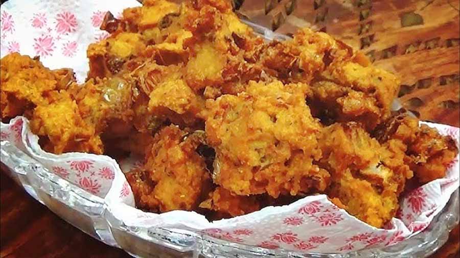 फिर मैश किए हुए आलू को बेसन के घोल में मिला लें। रोटी के टुकड़ों को इस घोल में डुबोकर गर्म तेल में सुनहरा होने तक तल लें।