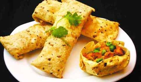 एक बर्तन में मैदा और तीन-चौथाई कप पानी डालें। मैदे के घोल को अच्छी तरह से मिलाएं ताकि उसमें एक भी गांठ न रहे। एक दूसरे बर्तन में आलू, हरी मिर्च, लाल मिर्च पाउडर, गरम मसाला, नमक, नीबू का रस और धनिया पत्ती डालकर मिलाएं। मिश्रण को छह बराबर हिस्सों में बांटें और उसे हाथों से रोल करके लंबा और चपटा रूप दें। पापड़ को टुकड़ा करके एक प्लेट में रख लें। कड़ाही में तेल गर्म करें। अब आलू वाले रोल को पहले मैदे के घोल में डुबोएं और उसके बाद पापड़ के टुकड़े के ऊपर रोल करें ताकि टुकड़े उसमें अच्छी तरह से चिपक जाएं। रोल को गर्म तेल में सुनहरा होने तक अच्छी तरह से तलें। हरी चटनी के साथ गर्मागर्म सर्व करें।