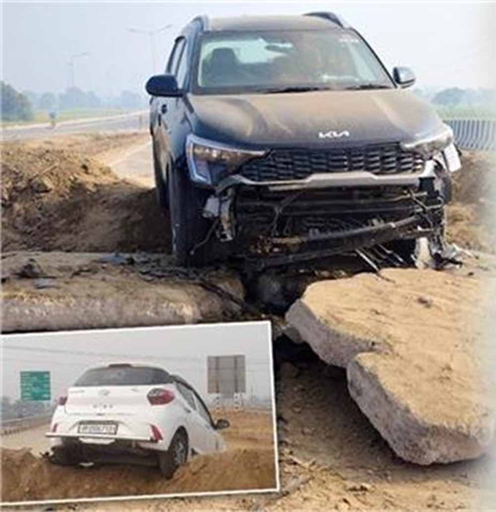 मिट्टी के टीले से टकरा कर क्षतिग्रस्त हुई कार
