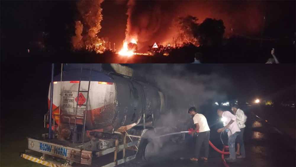 रात लगभग 11.30 बजे ढाबे व पेट्रोल-डीजल से भरे टैंकर में एक साथ भड़की आग को बरघाट पुलिस ने लगभग तीन घंटे की मशक्कत कर रात लगभग 2 बजे काबू किया। घटना के दौरान ढाबे में संचालक संतोष सोनी के अलावा एक कमरे में पान दुकान संचालित कर रहा पंकज व उसका बड़ा भाई राहुल पटले मौजूद थे। आग इतनी भीषण थी कि मौके पर अफरा-तफरी मच गई। टैंकर का हेल्पर व ढाबे में मौजूद लोग डरकर इधर-उधर भाग निकले।