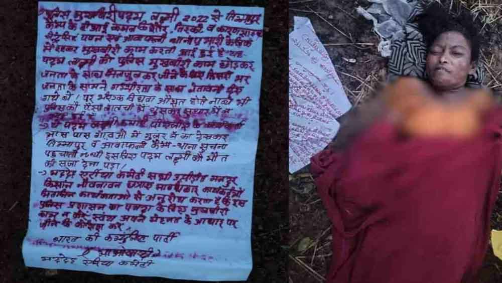 उन्होंने बताया कि इसकी सूचना मिलने के बाद पुलिस की एक टीम मौके पर पहुंची और शव को पोस्टमार्टम के लिए भेज दिया गया। घटनास्थल पर माओवादियों की मद्देड़ क्षेत्र समिति द्वारा जारी एक पर्चा मिला है, जिसमें उन्होंने महिला पर पुलिस मुखबिर के रूप में काम करने का आरोप लगाया है।