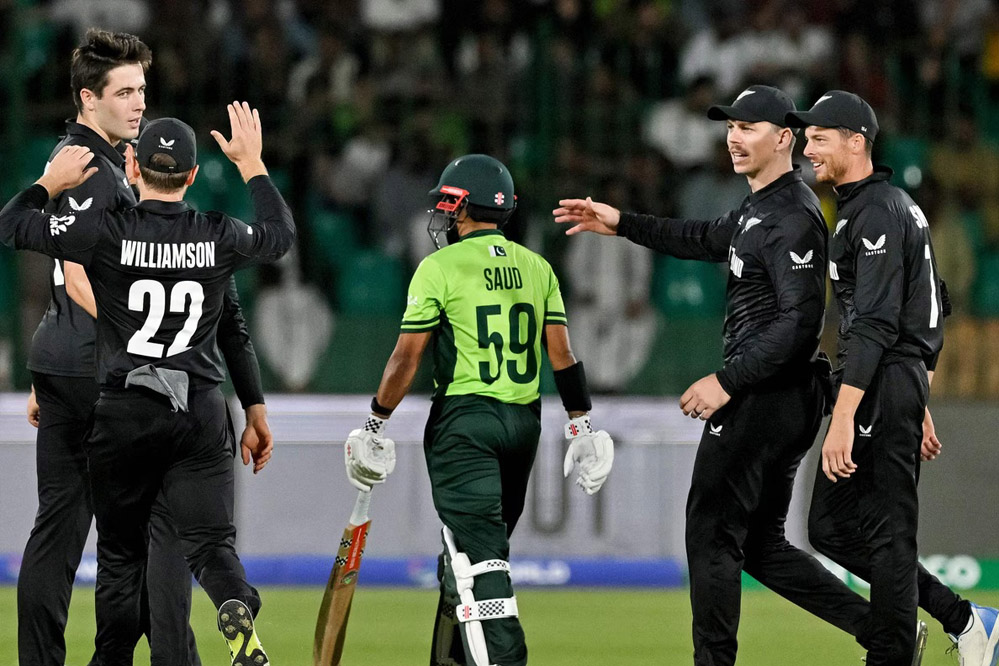 न्यूजीलैंड की इस मुकाबले में सधी शुरुआत रही. लेकिन उनको पहला झटका 39 रन के स्कोर पर डेवोन कॉन्वे (10) के रूप में लगा, जिन्हें अबरार अहमद ने आउट किया. इसके बाद आए केन विलियमसन (01) भी कुछ खास नहीं कर पाए और नसीम शाह की गेंद पर पर कप्तान रिजवान को कैच थमा बैठे.