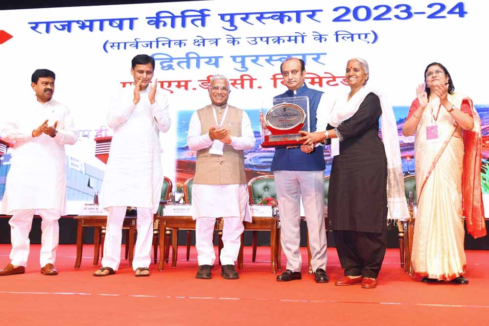एनएमडीसी लिमिटेड, भारत के सबसे बड़े लौह अयस्क उत्पादक और सार्वजनिक क्षेत्र की नवरत्न कंपनी को ‘ग’ क्षेत्र में स्थित उपक्रमों की श्रेणी में वर्ष 2023-2024 के लिए प्रतिष्ठित ‘राजभाषा कीर्ति अवॉर्ड’ से सम्मानित किया गया । यह पुरस्कार राजभाषा विभाग, गृह मंत्रालय द्वारा नई दिल्ली में आयोजित हिंदी दिवस समारोह 2024 और चतुर्थ अखिल भारतीय राजभाषा सम्मेलन में प्रदान किया गया । राजभाषा नीति के प्रभावी कार्यान्वयन के लिए एनएमडीसी को द्वितीय पुरस्कार से सम्मानित किया गया ।
