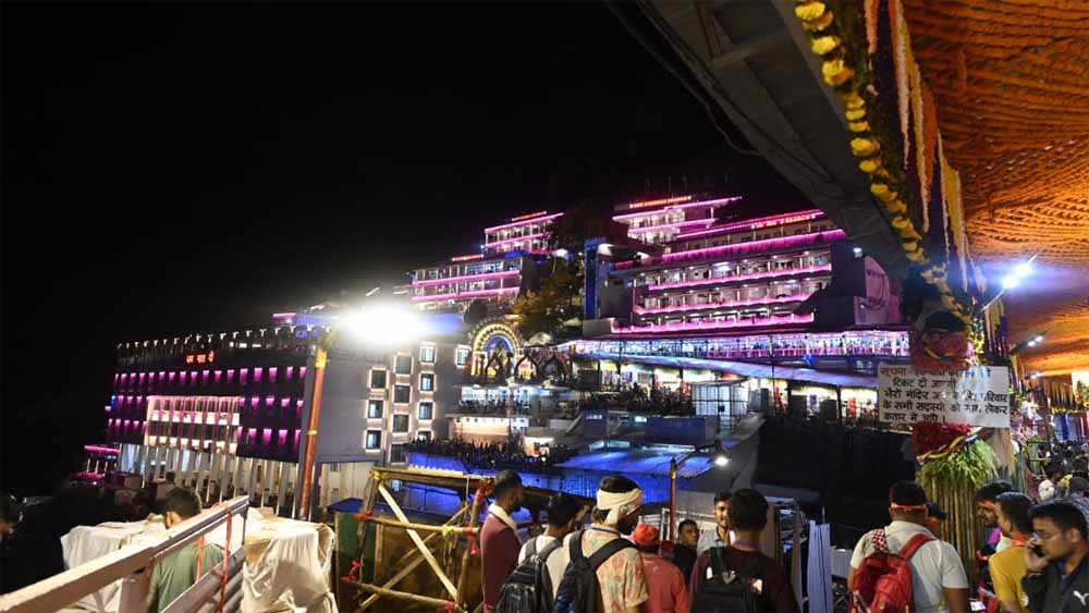 शारदीय नवरात्रों की प्रतिपदा को जम्मू के कटरा स्थित मां वैष्णो देवी का भवन दुल्हन की तरह सज गया है। बड़ी संख्या में श्रद्धालु देवी की आराधना को जुटे हैं। श्रद्धालुओं की सुविधा का खास ख्याल रखा गया है। वहीं, मां वैष्णो देवी भवन परिसर में विशाल शत चंडी महायज्ञ का आयोजन भी किया गया है। माता के भवन परिसर में जगह-जगह बने विशाल पंडाल, स्वागत द्वार और देवी-देवताओं की मूर्तियां श्रद्धालुओं को अपनी ओर खींच रही हैं। देसी और विदेशी फलों-फूलों की महक से वातावरण महक रहा है। मां वैष्णो देवी के दिव्य दर्शन पाने के लिए भक्तों की संख्या बढ़ती जा रही है। बुधवार दोपहर तक लगभग 25,500 श्रद्धालुओं ने पंजीकरण करवा लिया था और वे मां के दर्शन के लिए रवाना हो चुके थे। श्रद्धालुओं को बिना किसी देरी के आरएफआईडी यात्रा कार्ड उपलब्ध कराए जा रहे हैं, जिससे उन्हें यात्रा में किसी प्रकार की कठिनाई नहीं हो रही है।