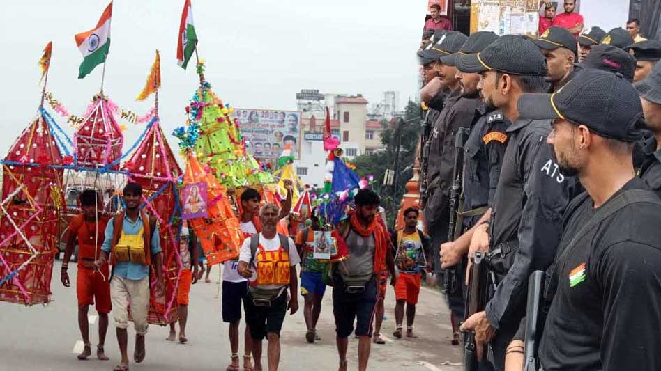 हरिद्वार से जल लेकर आने वाले कावड़ियों की संख्या मेरठ और मुजफ्फरनगर में बढ़ाने लगी है। सुरक्षा एजेंसियों से इनपुट मिला है कि कांवड़ यात्रा पर आतंकी साया मंडरा रहा है। जिसके चलते आकाश से लेकर जमीन तक डॉग स्क्वाड और बम निरोधक दस्ते के साथ कांवड़ यात्रा पर प्रशासन निगरानी रख रहा है। किसी भी आतंकी घटना से बचने के लिए प्रशासन ने ATS की कमांडो टुकड़ी के साथ RAF और PAC को भी लगाया गया है। वही सुरक्षा की दृष्टि से ड्रोन के द्वारा कावड़ मार्ग पर निगरानी रखी जा रही है और कावड़ मार्ग का सुरक्षा घेरा बढ़ा दिया गया है।