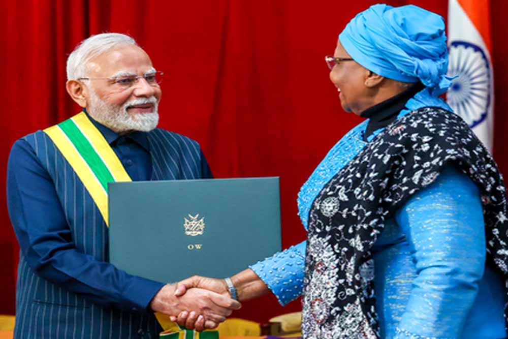 नामीबिया की राष्ट्रपति डॉ. नेटुम्बो नंदी-नदैतवा ने जुलाई 2025 में नामीबिया के सर्वोच्च नागरिक सम्मान 'ऑर्डर ऑफ द मोस्ट एंशिएंट वेल्विचिया मिराबिलिस' से पीएम मोदी को सम्मानित किया।