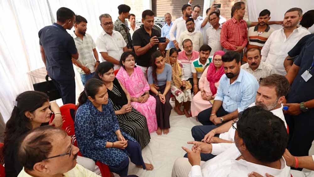 पत्नी ने कहा कि उनका पति गुमनामी की मौत नहीं मर सकता है। राहुल ने परिजनों को आश्वस्त किया कि वह इसके लिए प्रधानमंत्री को चिट्ठी लिखेंगे। यह भी बताया गया कि इस घटना को देखते हुए उन्होंने लोकसभा का विशेष सत्र बुलाने के लिए भी प्रधानमंत्री से कहा है। शाम करीब 3.45 बजे चकेरी एयरपोर्ट से कांग्रेस के पूर्व राष्ट्रीय अध्यक्ष सीधे हाथीपुर पहुंचे।