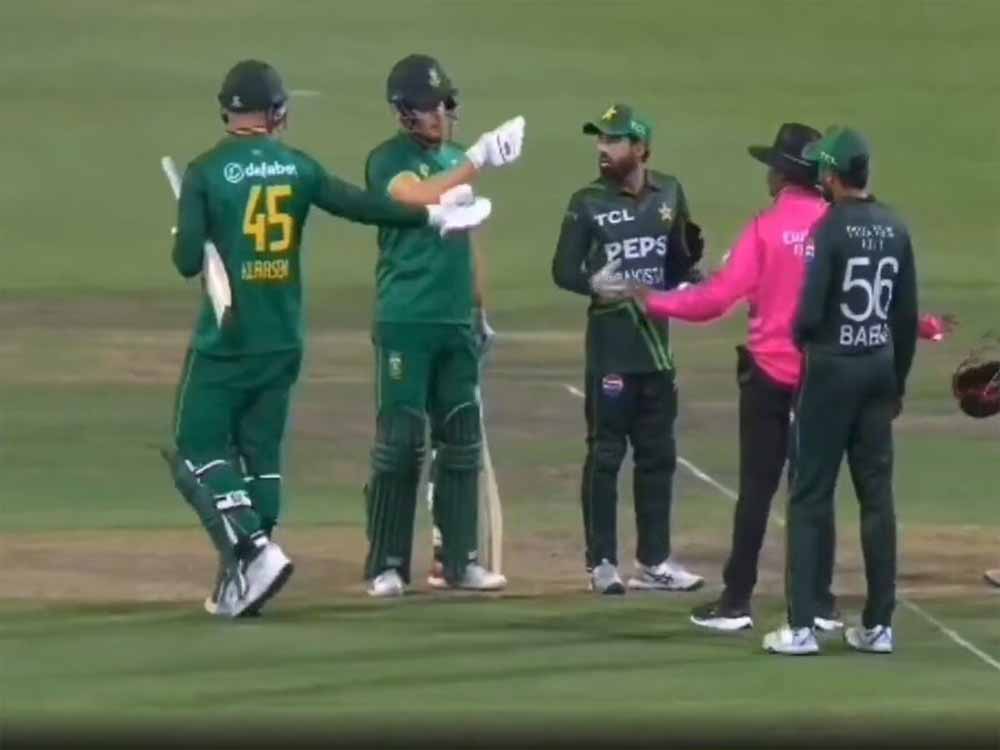 यह घटना साउथ अफ्रीका की पारी के 26वें ओवर की है। ओवर की आखिरी गेंद पर हारिस रऊफ ने हेनरिक क्लासेन से कुछ कहा। इसके बाद दोनों के बीच शब्दों को आदान-प्रदान हुआ। मगर जैसे ही ओवर खत्म हुआ तो मोहम्मद रिजवान ने क्लासेन ने बहस शुरू कर दी। क्लासेन भी पिछे नहीं हट रहे थे, उन्होंने भी रिजवान से जमकर तू-तू मैं-मैं की। रऊफ फिर इस बहस में कूद रहे थे मगर बाबर आजम और अंपायरों ने उन्हें वापस भेज दिया।
