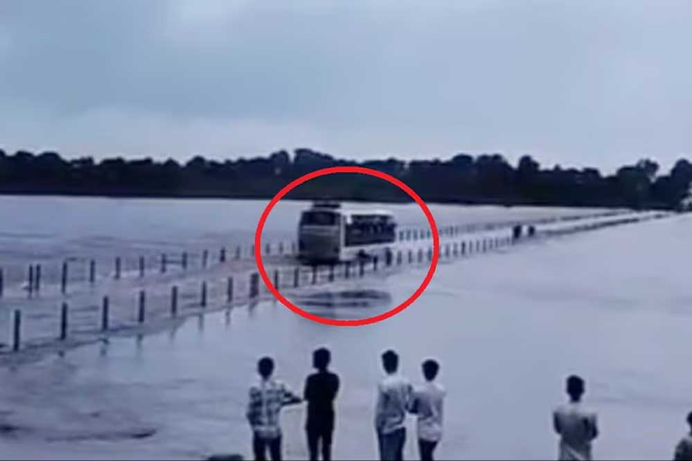 रोंगटे खड़े कर देने वाले इस वीडियो में आप साफ तौर पर देख सकते हैं कि किस तरह पुल के किनारे खड़ी यात्रियों से भरी नीले रंग की बस और एक कार पुल पर 2 फीट पानी होने के बावजूद पुल पार करती नजर आ रही है. पुल के किनारे खड़े कुछ लोग पूरे वाकए को लेकर आपस में बातचीत कर चीख भी रहे हैं. बस तेज बहाव के बीच धीरे-धीरे दूसरे किनारे तक पहुंच जाती है और उसके पीछे पीछे एक कार भी पुल के बहाव से दूसरे किनारे पहुंच जाती है. गनीमत रही कि बस हादसे का शिकार होने से बाल बाल बच गई. लेकिन इस तरह की लापरवाही सामने आने से पुलिस प्रशासन के सुरक्षा इंतजामात की पोल भी खुल रही है.