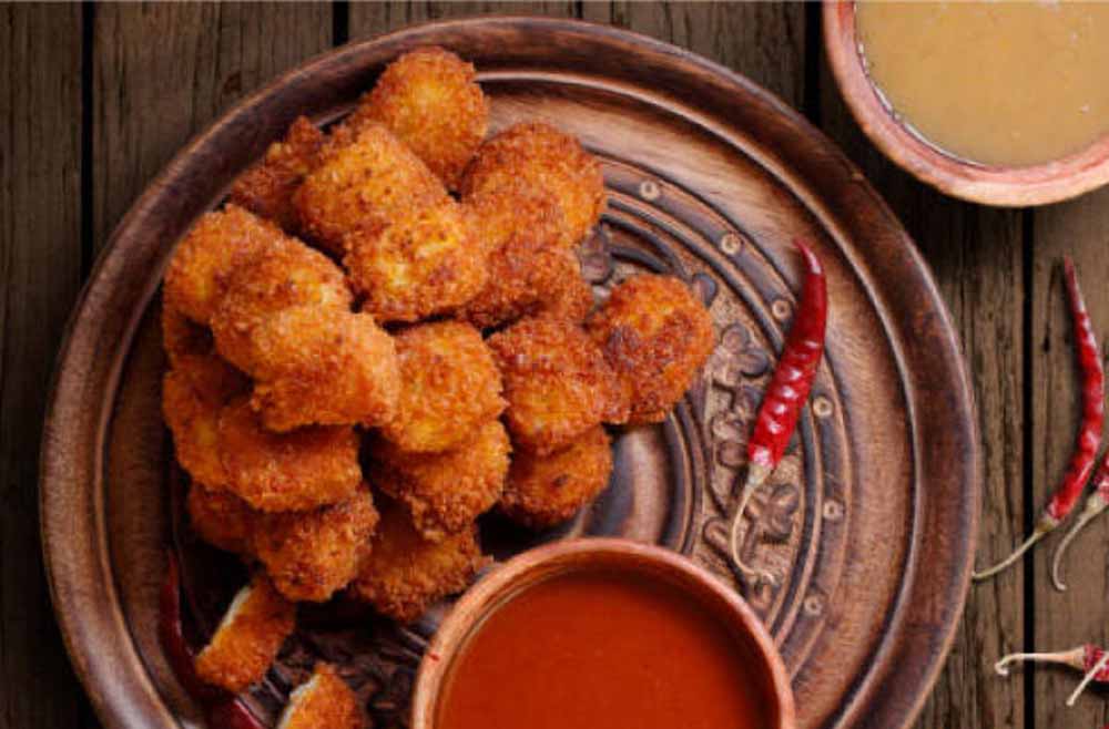 आपका गरमागरम और स्वादिष्ट क्रिस्पी पनीर तैयार है। इसे आप हरी चटनी या टोमैटो सॉस के साथ परोस सकते हैं।
