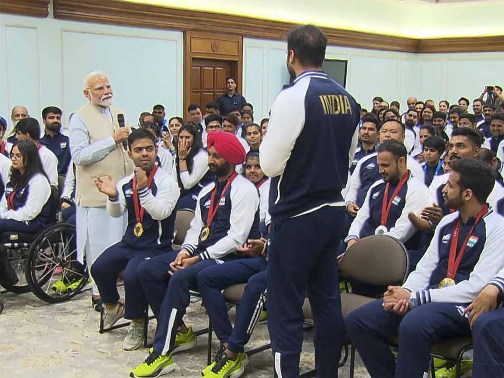 प्रधानमंत्री नरेंद्र मोदी ने गुरुवार को अपने आवास पर पेरिस पैरालंपिक में हिस्सा लेने वाले एथलीटों से मुलाकात करते हुए शानदार प्रदर्शन के लिए बधाई दी। पेरिस में पैरालंपिक खेलों में भारत ने कुल 29 पदक जीतते हुए अब तक का सर्वश्रेष्ठ प्रदर्शन किया। खेल मंत्रालय द्वारा शेयर किए गए वीडियो में प्रधानमंत्री नरेंद्र मोदी पदक विजेताओं से बातचीत करने से पहले उन्हें बधाई देते हुए नजर आ रहे हैं। इस दौरान खिलाड़ियों ने पीएम को खास चीजें गिफ्ट की। पैरालंपिक स्वर्ण पदक विजेता अवनि लेखरा ने प्रधानमंत्री मोदी को साइन की हुई भारतीय जर्सी भेंट की।