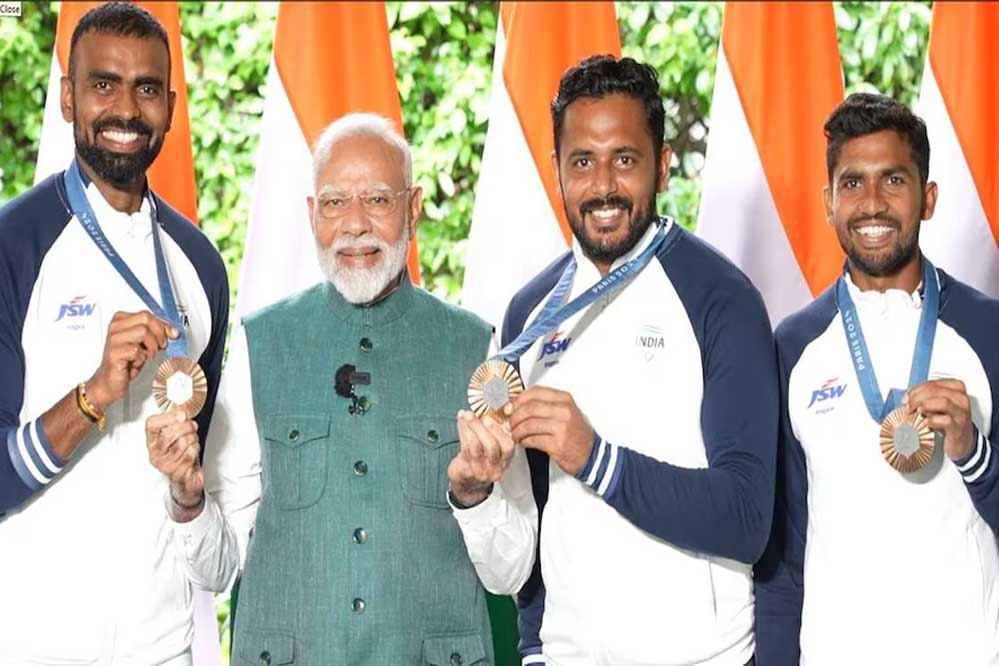प्रधानमंत्री नरेंद्र मोदी ने गुरुवार (15 अगस्त) को ओलंपिक दल से मुलाकात की थी. इस दौरान पीएम मोदी ने हॉकी टीम के खिलाड़ियों से भी संवाद किया. पीएम मोदी ने खासकर हॉकी टीम के कप्तान हरमनप्रीत सिंह और पीआर श्रीजेश की जमकर प्रशंसा की. पीएम मोदी ने कहा कि हॉकी टीम ने 52 साल बाद लगातार दो ओलंपिक गेम्स में पदक जीते. पीएम ने श्रीजेश से उनके रिटायरमेंट पर भी बात की. पीएम ने कहा कि सरपंच साहब (कप्तान हरमनप्रीत सिंह) और टीम ने श्रीजेश को शानदार विदाई दी.
