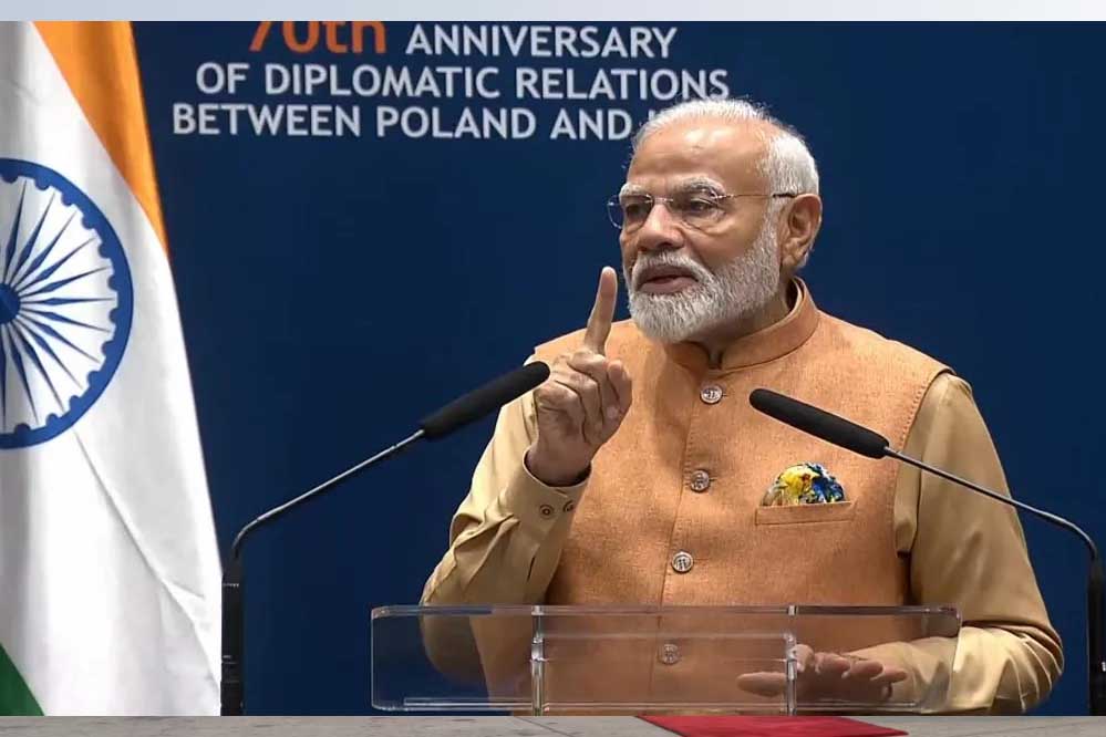 पोलैंड की राजधानी में भारतीय समुदाय के लोगों को संबोधित करते हुए प्रधानमंत्री मोदी ने कहा, ‘दशकों तक भारत की नीति सभी देशों से दूरी बनाकर रखने की रही थी। हालांकि आज के भारत की नीति सभी देशों के करीब रहने की है।’उन्होंने ‘मोदी-मोदी’ के नारों के बीच कहा, ‘भारत भगवान बुद्ध की धरती है। इसलिए भारत इस क्षेत्र में स्थायी शांति का समर्थक है। हमारा रुख बहुत स्पष्ट है- यह युद्ध का युग नहीं है। यह उन चुनौतियों के खिलाफ एक साथ आने का समय है जो मानवता को खतरे में डालती हैं। इसलिए, भारत कूटनीति और संवाद में विश्वास करता है।’