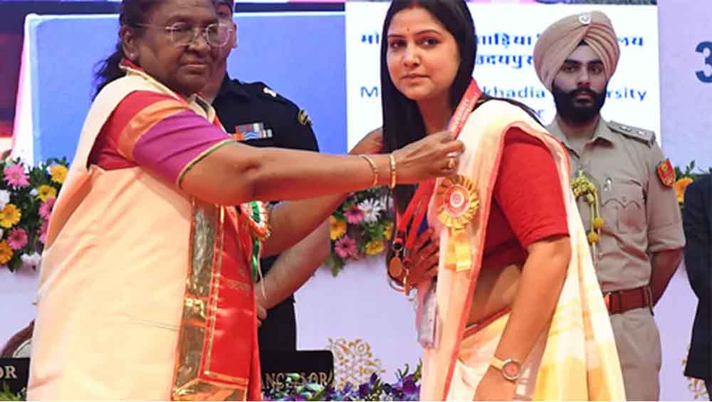 राष्ट्रपति उदयपुर में मोहनलाल सुखाड़िया विश्वविद्यालय के दीक्षांत समारोह को संबोधित कर रही थीं। उन्होंने कहा कि शिक्षा सशक्तीकरण का सबसे अच्छा माध्यम है।उन्होंने कहा, ‘‘हमने वर्ष 2047 तक एक विकसित राष्ट्र बनने का लक्ष्य रखा है। आपकी पीढ़ी के योगदान के बल पर ही यह राष्ट्रीय लक्ष्य प्राप्त करना संभव होगा। मैं आशा करती हूं कि आप राष्ट्र निर्माण में यथाशक्ति का सर्वाधिक योगदान देंगे।’’ उन्होंने कहा, ‘‘मुझे आशा है कि आप अपने आचरण और कार्यों से अपने परिवार, समाज तथा देश का गौरव बढ़ाएंगे। इसी से आपकी शिक्षा की सार्थकता सिद्ध होती है।’’ बाबा साहेब आंबेडकर का जिक्र करते हुए उन्होंने कहा, ‘‘बाबा साहेब का मानना था कि चरित्र, शिक्षा से भी ज्यादा महत्वपूर्ण है। वह मानते थे कि ऐसा शिक्षित व्यक्ति जिसमें चरित्र और विनम्रता न हो वह हिंसक जीव से भी ज्यादा खतरनाक होता है। उसकी शिक्षा से यदि गरीबों को हानि हो वह व्यक्ति समाज के लिए अभिशाप हो सकता है।’’ उन्होंने कहा, ‘‘मेरा आप सभी से ये कहना है कि आप जहां भी हों, कोई ऐसा कार्य न करें जिससे आपके चरित्र पर लांछन आये।’’ मुर्मू ने कहा कि आज के बदलते परिवेश में जब विज्ञान और प्रौद्योगिकी सहित विभिन्न क्षेत्रों में तेजी से बदलाव हो रहे हैं ऐसे में विद्यार्थियों की ‘‘विद्यार्थी की भावना’’ को सदैव बनाए रखना चाहिए। उन्होंने विद्यार्थियों से कहा, ‘‘आपको व्यक्तिगत महत्वाकांक्षा और सामाजिक संवेदनशीलता दोनों का समन्वय बनाकर आगे बढ़ना चाहिए। संवेदना एक प्राकृतिक गुण है।’’ उन्होंने कहा कि कुछ लोग स्वार्थ का मार्ग पकड़ लेते हैं लेकिन सबके हित को प्राथमिकता देने की विचारधारा आपकी प्रतिभा और अधिक निखारेगी।