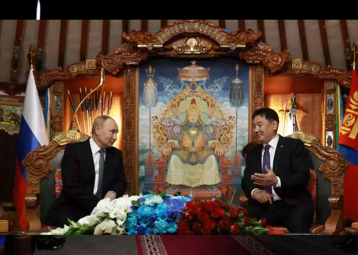 मंगोलिया की राजधानी उलानबटार पहुंचने पर राष्ट्रपति पुतिन का ग्रैंड वेलकम किया गया. उन्हें गार्ड ऑफ ऑनर दिया गया. यहां तक कि चंगेज खान के स्मारक को मंगोलिया और रूस के झंडे से रंग दिया गया. मंगोलिया की विदेश मंत्री बटमुंख खुद उनकी अगवानी करने एयरपोर्ट पहुंची थीं.