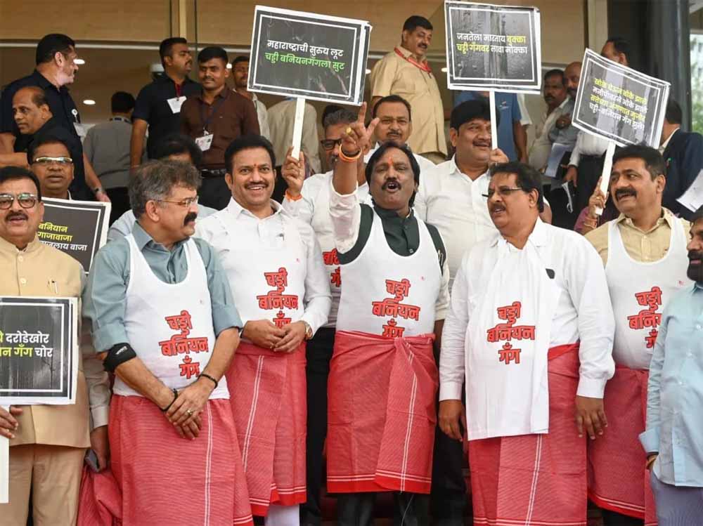 महाराष्ट्र में सत्तारूढ़ गठबंधन में शामिल उप मुख्यमंत्री एकनाथ शिंदे की अगुवाई वाली शिवसेना के विधायक संजय गायकवाड़ द्वारा कैंटीन कर्मचारी की पिटाई मामले में सियासत अपने चरम पर है। इसका नजरा आज (बुधवार को) उस वक्त देखने को मिला जब विपक्षी दलों के गठबंधन महा विकास आघाडी (MVA) के विधायकों ने अनूठे अंदाज में विरोध-प्रदर्शन किया। दरअसल, महाराष्ट्र विधान भवन के बाहर विपक्षी महा विकास आघाड़ी के विधायकों ने ‘बनियान तौलिया’ प्रदर्शन किया।
