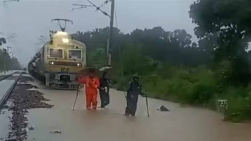स्लीमनाबाद और डुंडी स्टेशन के बीच इमलिया के पास रेलवे ट्रैक पर पानी भरा, ट्रैकमैन दिखा रहे रास्ता; वायरल हुआ वीडियो