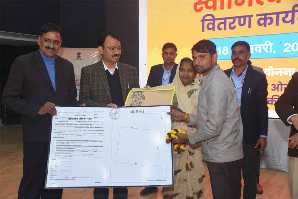 कार्यक्रम का लाइव प्रसारण राज्य के प्रत्येक जिले में किया गया। इस दौरान प्रधानमंत्री द्वारा देशभर के लगभग 50 हजार गांवों में 65 लाख प्रोपर्टी कार्ड का वितरण किया गया एवं विभिन्न राज्यों के लाभार्थियों से संवाद किया गया। प्रधानमंत्री श्री नरेंद्र मोदी ने वर्चुअल संवाद के द्वारा बताया की सरकार की इस पहल से ग्रामीणों को अपनी जमीन और संपत्ति को वित्तीय पूंजी के तौर पर इस्तेमाल करने की सुविधा मिलेगी जिसके एवज में वे बैंकों से कर्ज और अन्य वित्तीय लाभ उठा सकेंगे। प्रधानमंत्री द्वारा वर्चुअल रूप से योजना के लाभ की जानकारी आमजन को दी गई। उन्होंने कहा कि इस कार्यक्रम की शुरुआत से करीब एक लाख संपत्ति मालिक अपनी संपत्ति से जुड़े कार्ड अपने मोबाइल फोन पर एसएमएस लिंक के जरिए डाउनलोड कर सकेंगे। कार्यक्रम से प्रदेश के मुख्यमंत्री श्री भजनलाल शर्मा भी वर्चुअल माध्यम से जुड़े। कार्यक्रम के साथ राज्य के प्रत्येक जिले में स्वामित्व योजनान्तर्गत जिला स्तरीय कार्यक्रम आयोजित किए गए। भीलवाड़ा जिले में स्वामित्व योजनान्तर्गत पात्र लाभार्थियों को पट्टे मय स्वामित्व कार्ड वितरण का जिला स्तरीय कार्यक्रम नगर निगम सभागार में राज्य के उप मुख्यमंत्री एवं जिले के प्रभारी मंत्री डॉ प्रेमचंद बैरवा के मुख्य आतिथ्य आयोजित हुआ। जिला स्तरीय कार्यक्रम को सम्बोधित करते हुए प्रभारी मंत्री ने कहा कि ग्रामीण क्षेत्र में रहने वाले लोगों के स्वामित्व के अधिकार की सोच को साकार करते हुए आज देश के माननीय प्रधानमंत्री द्वारा स्वामित्व योजना के तहत एक साथ बड़ी संख्या में पात्र लाभार्थियों को उनके आवासों के पट्टों का वितरण किया गया है। कार्यक्रम में उपमुख्यमंत्री डॉ बैरवा ने सभा को संबोधित करते हुए बताया की यह योजना संपत्तियों की आर्थिक लाभ प्राप्ति को सुगम बनाने और बैंक ऋण के माध्यम से संस्थागत ऋण उपलब्ध कराने, संपत्ति संबंधी विवादों को कम करने, ग्रामीण क्षेत्रों में संपत्तियों और संपदा कर के बेहतर मूल्यांकन की सुविधा प्रदान करने तथा व्यापक ग्राम-स्तरीय योजना बनाने में भी मदद करती है। उन्होंने बताया कि प्रधानमंत्री द्वारा स्वामित्व योजना को नवीनतम सर्वेक्षण ड्रोन तकनीक के माध्यम से गांवों में बसावट क्षेत्रों में घरों के मालिकों को ‘अधिकार पत्र’ प्रदान करके ग्रामीण भारत की आर्थिक प्रगति को बढ़ाने के विजन के साथ शुरू किया गया था।इस दौरान प्रभारी मंत्री द्वारा स्वामित्व योजनान्तर्गत ज़िले के 200 पात्र लाभार्थियों को भौतिक रूप से पट्टा मय प्रॉपर्टी पार्सल का वितरण किया गया। ज़िला कलक्टर नमित मेहता ने कहा की स्वामित्व योजना के तहत जिले में 24 हजार 571 पात्र लाभार्थियों को उनके आवासों के पट्