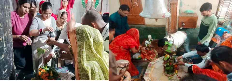 इस बार सावन माह की शुरुआत सोमवार से हुई और सोमवार को ही सावन माह की समाप्ति होगी, इस माह में पांच सावन सोमवार आएंगे। आज सावन के पहले सोमवार को श्रद्धालु शिवालय पहुंचे और भगवान शिव-पार्वती की पूजा-अर्चना की। शिवलिंग पर जल-दूध चढ़ाकर अभिषेक किया और बिल्व पत्र व कनेर आदि पुष्प चढ़ाकर भगवान का श्रृंगार किया। मंदिर के पुजारी रामरख ने बताया कि मान्यताओं के अनुसार सावन मास में सोमवार का विशेष महत्व है। इस दिन को भगवान शिव का स्वरूप माना गया है। जो भक्त प्रतिदिन नियमपूर्वक पूजा नहीं कर सकते, उन्हें सावन मास में शिव पूजा और व्रत रखना चाहिए सावन महीने में जितने भी सोमवार आते हैं, शिवजी का व्रत किया जाता है।