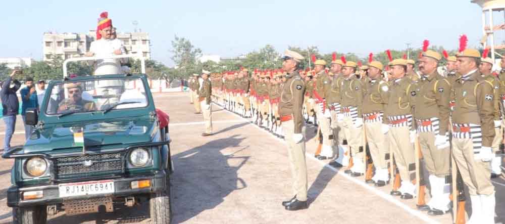 जिला स्तरीय मुख्य समारोह पुलिस लाइन ग्राउंड में आयोजित किया गया, जहां समारोह के मुख्य अतिथि जलदाय और भू जल विभाग के मंत्री श्री कन्हैया लाल चौधरी ने सुबह 9 बजे ध्वजारोहण किया। समारोह में मुख्य अतिथि के परेड निरीक्षण के बाद आरएसी, राजस्थान पुलिस, राजस्थान महिला पुलिस, होम गार्ड, एनसीसी, स्काउट्स एवं गाइड की टुकड़ियां मंच से सलामी लेते हुए गुजरी। आरएसी एवं राजस्थान पुलिस के बैंडों ने राष्ट्रीय भावना से ओतप्रोत धुनें बजाईं। मुख्य अतिथि ने वीरांगनाओं को शॉल ओढ़ाकर सम्मानित किया। साथ ही, जिले में उत्कृष्ट कार्य करने वाली 88 प्रतिभाओं को प्रमाण-पत्र और स्मृति चिन्ह भेंट कर सम्मानित किया गया। अतिरिक्त जिला कलेक्टर रामरतन सौकरिया ने राज्यपाल महोदय के संदेश का पठन किया। इस अवसर पर मुख्य अतिथि ने कहा कि प्रधानमंत्री श्री नरेंद्र मोदी के नेतृत्व में वैश्विक पटल पर भारत की साख बढ़ी है और हर क्षेत्र में हम कीर्तिमान स्थापित कर रहे हैं। चहुंमुखी प्रगति के इस वातावरण में हमें और अधिक उर्जा के साथ अपना योगदान देना होगा। इसके लिए हमंे स्वच्छता और स्वास्थ्य को अधिक महत्व देने की आवश्यकता है। स्वच्छता से स्वास्थ्य सुदृढ़ होगा और स्वस्थ्य नागरिक ही मजबूत और सशक्त देश का निर्माण कर सकेंगे। राज्य के यशस्वी मुख्यमंत्री श्री भजन लाल शर्मा के नेतृत्व में प्रदेश में सुशासन एवं सरकार की जनकल्याणकारी योजनाओं और फैसलों को धरातल पर उतारकर आमजन तक पहुंचाने में कोई कोर कसर नहीं छोड़ी जा रही है। प्रदेश विकास के नए प्रतिमान तय कर रहा है। सरकार द्वारा संवेदनशील, पारदर्शी एवं जवाबदेह शासन के संकल्प के साथ सभी क्षेत्रों में बहुआयामी विकास के लिए योजनाबद्ध कार्य किया जा रहा है। जनकल्याण राज्य की कल्पना साकार