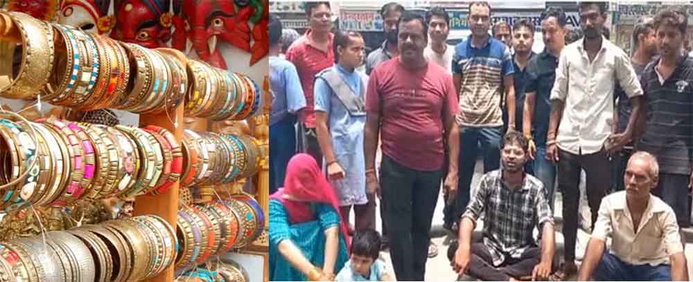 राजस्थान-अजमेर में चूड़ी बाजार के स्ट्रीट वेंडर्स परिवार धरने पर बैठे