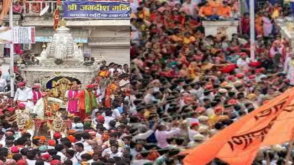 राजस्थान-उदयपुर में राजपरिवार के विश्वराज सिंह और महिमा कुमारी ने खींचा रथ
