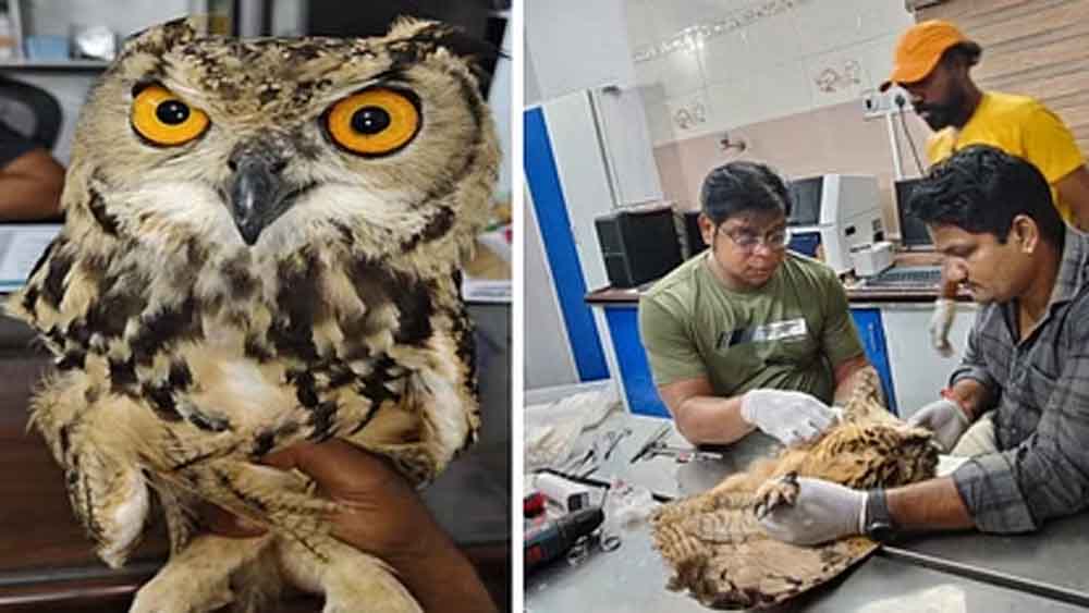 जानकारी में सामने आया कि यह इंडियन ईगल ऑउल (उल्लू) निकटवर्ती सेगवा गांव में आया था। यहां रहने वाले नगेंद्र मोड़ ने इसे देखा था। उल्लू फड़फड़ा रहा था लेकिन उड़ नहीं पा रहा था। इस पर मोड़ इसे अपने घर ले आया, जिससे कि कोई दूसरे जीव इस पर झपटा नहीं मार दे। पहले तो सोचा कि बीमारी के कारण नहीं उड़ रहा या रात को यह उल्लू उड़ जाएगा लेकिन जब यह सुबह भी नहीं उड़ा तो नगेंद्र मोड़ ने इसकी जानकारी वन्य जीव प्रेमी मनीष तिवारी को दी और इस उल्लू को वन विभाग लेकर आ गए। यहां इस उल्लू को वरिष्ठ पशु चिकित्सक डॉ. धर्मेंद्र सोन को दिखाया। उल्लू के स्वास्थ्य की पूरी जांच करने पर पता चला कि उसका एक पंख टूटा हुआ है। ऐसे में इसका ऑपरेशन किया गया। डॉ. सोन ने बताया कि अभी कुछ दिनों तक इस उल्लू को चिकित्सीय निरीक्षण में रखना होगा, उसके उपरांत पूर्ण स्वस्थ होने पर इसे इसके नैसर्गिक आवास में छोड़ दिया जाएगा। आशंका जताई जा रही है कि यह उल्लू विद्युत लाइन में फंस गया होगा, जिससे इसका पंख टूट गया और यह उड़ने में असमर्थ हो गया।