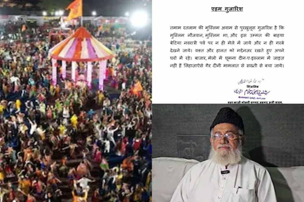 रतलाम के शहर काजी मौलवी सय्यद अहमद अली ने पत्र में लिखा, ‘तमाम रतलाम की मुस्लिम अवाम से पुरखुलूस गुजारिश है कि मुस्लिम नौजवान, मुस्लिम मां और उम्मत की बाहया बेटियां नवरात्रि पर्व पर न ही मेले में जाएं और न ही गरबे देखने जाएं. वक्त और हालात को मद्देनजर रखते हुए अपने घरों में रहें. बाजार, मेलों में घूमना दीन-ए-इस्लाम में जायज नहीं है. लिहाजा, ऐसे गैर दीनी मामलात से सख्ती से बचा जाए.’