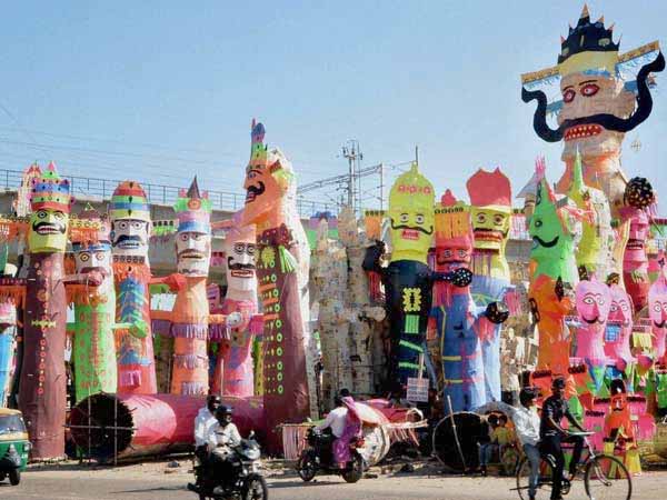 दशहरा पर रावण दहन को लेकर तैयारियां तेज हो गई हैं। इसी बीच मध्य प्रदेश के ग्वालियर में दशहरे के मौके पर लगने वाला रावण बाजार सज चुका है। इस बाजार में एक फीट से लेकर 25 फीट तक रावण बिकने आए हैं, जिनकी कीमत 100 रुपए से लेकर 5 हजार रुपए तक है।