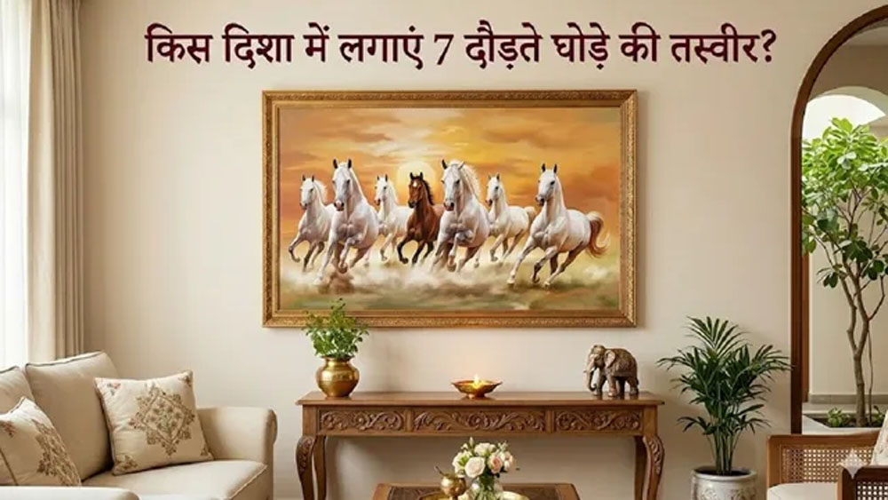 वास्तु शास्त्र के अनुसार, घर में रखी हर वस्तु और दीवार पर लगी हर तस्वीर हमारे जीवन पर सकारात्मक या नकारात्मक प्रभाव डालती है। इन्हीं में से एक सबसे प्रभावशाली प्रतीक है 7 दौड़ते हुए घोड़ों की तस्वीर। अक्सर लोग इसे केवल सजावट की वस्तु समझते हैं, लेकिन वास्तु के अनुसार, यह तस्वीर सफलता, शक्ति, साहस और प्रगति का प्रतीक है। अगर आप भी अपने करियर या बिजनेस में दिन दोगुनी रात चौगुनी तरक्की चाहते हैं, तो इस तस्वीर को लगाने की सही दिशा और नियम जरूर जान लें, जो इस प्रकार हैं –