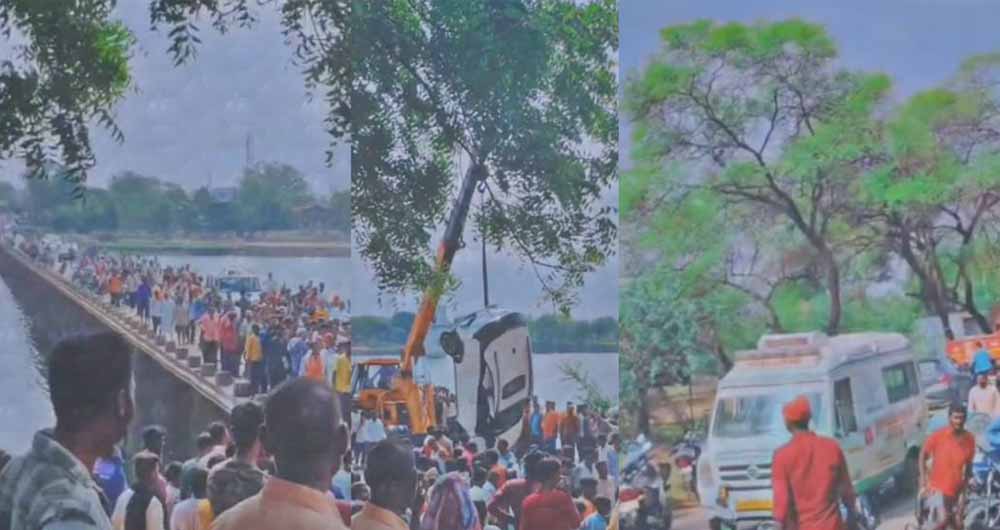 बेमेतरा में सड़क : तेज रफ्तार कार नदी में गिरी, एक की मौत