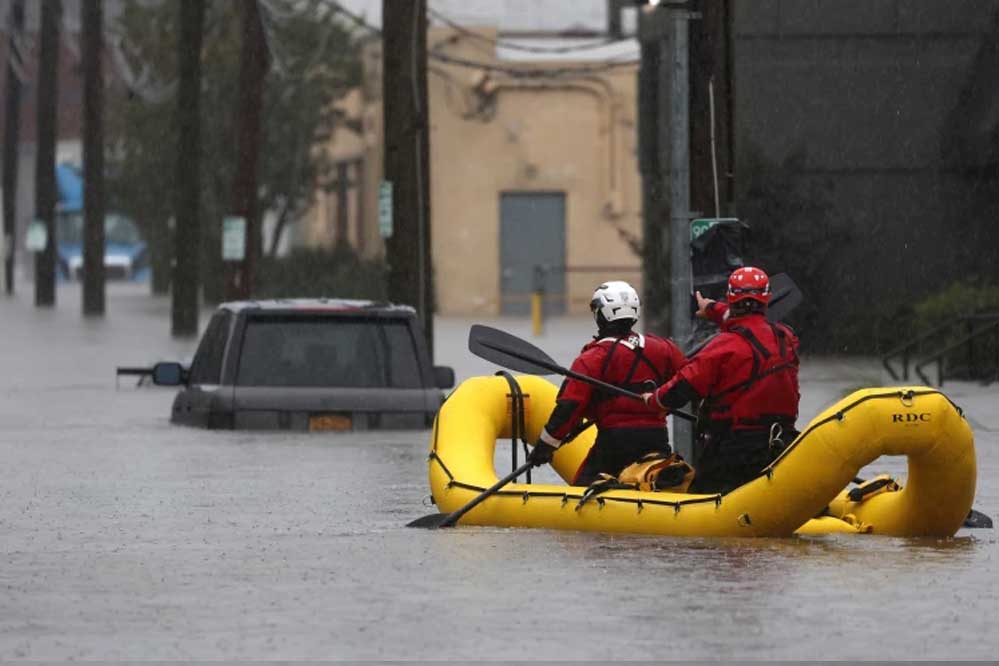 न्यूयॉर्क और न्यूजर्सी में भारी बारिश और तूफान से दो लोगों की मौत हो गई। मूसलाधार बारिश होने से पूरा इलाका पानी में डूब गया। न्यूयॉर्क का सबवे सिस्टम ठप हो गया और पूरे इलाके में बिजली गुल हो गई। प्लेनफील्ड में सोमवार को तेज बारिश के कारण एक गाड़ी सेडर ब्रूक में बह गई। इससे दो लोगों की मौत हो गई। गवर्नर फिल मर्फी ने बताया कि दोनों को घटनास्थल पर ही मृत घोषित कर दिया गया। उन्होंने खराब मौसम के कारण आपातकाल की घोषणा की है। इस महीने शहर में तूफान से होने वाली यह तीसरी और चौथी मौतें थीं।