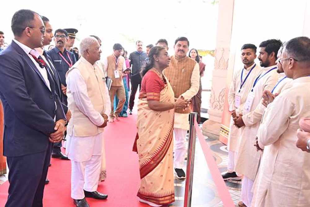 राष्ट्रपति श्रीमती द्रौपदी मुर्मु ने आज उज्जैन में श्रीमहाकाल लोक में पाषाण की मूर्तियों का निर्माण करने वाले शिल्पकारों से मिलकर संवाद किया और उनके द्वारा बनाई जा रही मूर्तियों को उत्कृष्ट बताया। राष्ट्रपति से शिल्पकार श्री ईश्वर चन्द्र महाराणा, शिल्पकार श्री आदित्य महाराणा, शिल्पकार श्री सुरेश कुमार ओझा, शिल्पकार श्री अक्षय कुमार महाराणा से त्रिवेणी सभा मण्डपम में भेट कर संवाद किया। सभी शिल्पकार ओड़िशा प्रदेश के पुरी जिले के रहने वाले हैं। जब राष्ट्रपति ने शिल्पकारों से संवाद किया तब सभी शिल्पकार काफी उत्सुक थे। खुशी से उनकी आँखे भर आई।