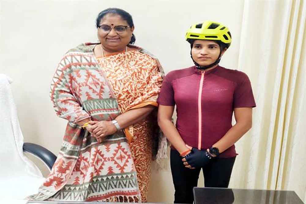 महिला-बाल विकास मंत्री सुश्री निर्मला भूरिया से गुरुवार को भोपाल में उनके निवास पर राष्ट्रीय खिलाड़ी और सोलो साइक्लिस्ट जिला राजगढ़ की कु. आशा मालवीय ने सौजन्य भेंट की।