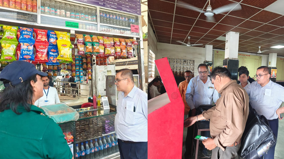 जांच के दौरान खाद्य सामग्री की गुणवत्ता, जनता खाने की उपलब्धता और अन्य यात्री सुविधाओं की भी समीक्षा की गई। इसके अलावा यात्रियों को एटीवीएम (ऑटोमेटिक टिकट वेंडिंग मशीन) से क्यूआर कोड स्कैन कर डिजिटल माध्यम से टिकट लेने के लिए जागरूक किया गया, जिससे टिकटिंग प्रक्रिया और सरल और पारदर्शी हो सके।
