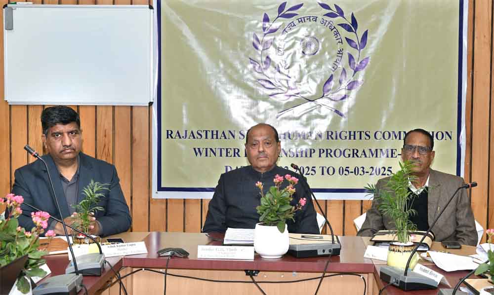 राजस्थान राज्य मानव अधिकार आयोग के अध्यक्ष न्यायाधिपति श्री जी आर मूलचंदानी ने बुधवार को सचिवालय में आयोग द्वारा विधि विद्यार्थियों के लिए आयोजित 15 दिवसीय शीतकालीन इंटर्नशिप कार्यक्रम का शुभारंभ किया।