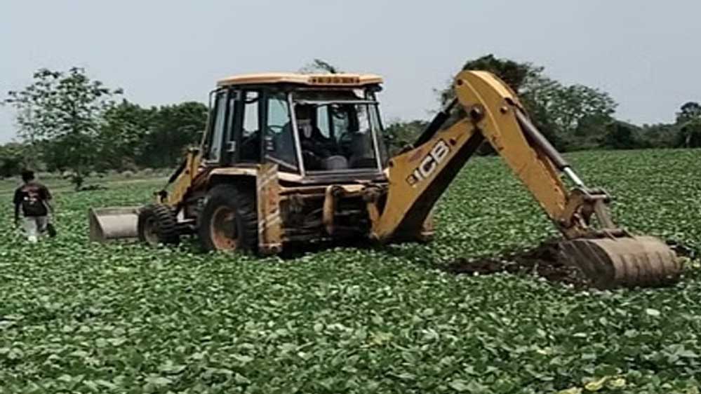 प्रशासन ने 11 हेक्टेयर कृषि भूमि पर कब्जा लेकर रेलवे को सौंपा, मूंग की खड़ी फसल पर जेसीबी चलाकर जमीन खाली कराई