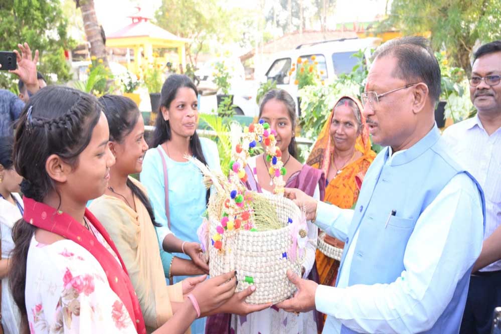 हितग्राहियों ने मुख्यमंत्री को सुख- समृद्धि की कामना के साथ धान की बालियां उपहार स्वरूप भेंट की