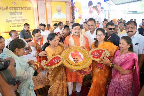 प्रारम्भ में मुख्यमंत्री डॉ. यादव ने अतिथियों के साथ दीप प्रज्ज्वलित कर कार्यक्रम का शुभारम्भ किया और कन्याओं का पूजन भी किया। बहनों ने मुख्यमंत्री डॉ. यादव को प्रतीक स्वरूप बड़ी राखी भेंट की और उपस्थित बहनों से अपने भैया मुख्यमंत्री डॉ. यादव की कलाई पर राखी भी बांधी। मुख्यमंत्री ने सभी बहनों को रक्षाबंधन पर उपहार भी भेंट किये। मुख्यमंत्री ने बहनों को अपने हाथों से झूला भी झुलाया और बहनों पर पुष्पवर्षा कर उनका स्वागत-अभिनन्दन किया।