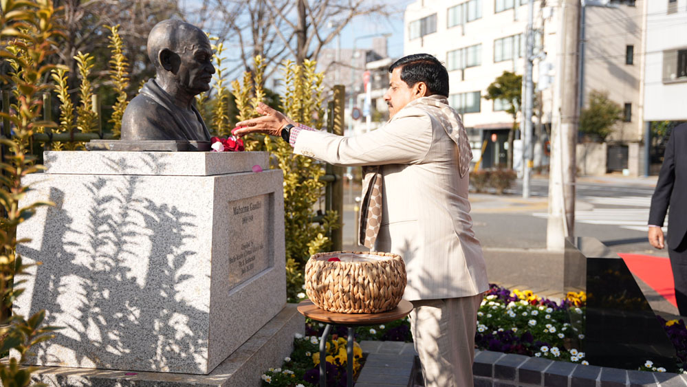 मुख्यमंत्री डॉ. मोहन यादव ने जापान के टोक्यो में एडोगावा सिटी स्थित गांधी पार्क में महात्मा गांधी की प्रतिमा पर श्रद्धांजलि अर्पित कर नमन किया। मुख्यमंत्री डॉ. यादव ने महात्मा गांधी के अहिंसा के सिद्धांत की चर्चा करते हुए कहा कि बापू के आदर्श आज भी पूरी दुनिया में लोगों को प्रेरित करते है। उन्होंने महात्मा गांधी के विचारों को भारत-जापान संबंधों से जोड़ते हुए कहा कि बापू का अहिंसा का सिद्धांत जापान के गौतम बुद्ध के सिद्धांतों के साथ मेल खाता है। यह दोनों देशों के बीच गहरे संबंधों को दर्शाता है।
