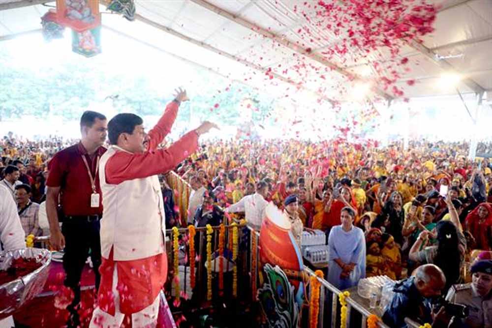 मुख्यमंत्री डॉ. यादव ने कार्यक्रम में भगवान श्रीकृष्ण पर आधारित भजन "गोविंदा आला-रे-आला, जरा मटकी संभाल बृजबाला" सुनाया। इस भजन पर उपस्थित श्रोताओं ने स्वर से स्वर मिलाकर पूरे कार्यक्रम को धर्ममय कर दिया। कार्यक्रम में प्रसिद्ध बांसुरी वादक बल्लू जी के बांसुरी वादन ने और माधवास बैंड की प्रस्तुति ने कार्यक्रम में आलौकिक अनुभूति कराई। मुख्यमंत्री ने "हाथी घोड़ा पालकी-जय कन्हैया लाल की" के जयकारों से पूरे कार्यक्रम स्थल को उपस्थित बाल-गोपालों और यशोदा माताओं के स्वर के साथ गुंजायमान कर दिया।