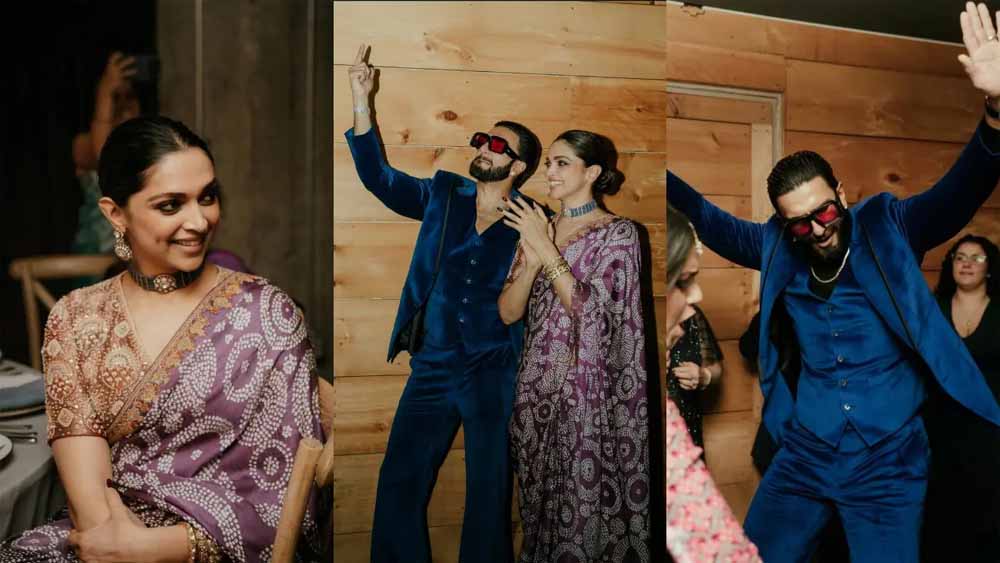 वहीं दीपिका पादुकोण हमेशा की तरह क्लास और एलिगेंस की मिसाल दिखती हैं। उन्होंने गहरे बैंगनी रंग की प्रिंटेड साड़ी पहनी है, जिस पर खूबसूरत डिजाइन बने हैं। लो बन हेयरस्टाइल उनकी शार्प फीचर्स को उभारता है। स्टेटमेंट चोकर, चूड़ियां और हल्की रिंग्स उनकी जूलरी को खास बनाती हैं। सॉफ्ट मेकअप और ग्लोइंग स्किन के साथ उनका लुक बेहद सिंपल, ग्रेसफुल और शादी के लिए एकदम परफेक्ट है।