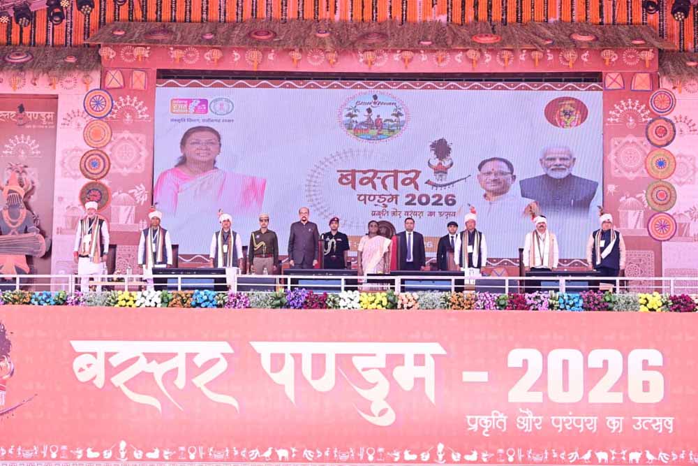 राष्ट्रपति  द्रौपदी मुर्मु आज सुबह बस्तर संभाग मुख्यालय जगदलपुर पहुँचीं, जहाँ उन्होंने संभाग स्तरीय बस्तर पंडुम-2026 का शुभारंभ किया। राष्ट्रपति  मुर्मु ने इस अवसर पर कहा कि आदिवासियों की संस्कृति में छत्तीसगढ़ की आत्मा बसती है। उन्होंने बस्तर की आराध्य देवी माँ दंतेश्वरी के जयघोष के साथ अपने उद्बोधन की शुरूआत की। राष्ट्रपति ने कहा कि देश में छत्तीसगढ़ ऐसा राज्य है, जहाँ सरकार अपनी संस्कृति, जनजातीय परंपराओं और प्राचीन विरासतों को संरक्षित करने के लिए बस्तर पंडुम जैसे आयोजन कर रही है। यह आयोजन आदिवासियों की गौरवशाली संस्कृति का जीवंत प्रतिबिंब है।