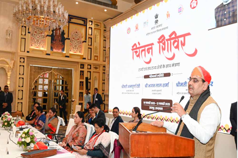 केंद्रीय महिला एवं बाल विकास मंत्री अन्नपूर्णा देवी ने कहा कि चिन्तन शिविर की परिकल्पना प्रधानमंत्री नरेंद्र मोदी ने की। उनका दृष्टिकोण है कि विकसित भारत के निर्माण के लिए महिलाओं और बच्चों का सशक्त होना आवश्यक है। उन्होंने कहा कि महिला एवं बाल विकास की चुनौतियों और उनके समाधान को लेकर आयोजित यह चिन्तन शिविर महिला-बाल विकास के समेकित उत्थान का नया अध्याय लिखेगा। उन्होंने केंद्र सरकार की ओर से संचालित मिशन सक्षम आंगनबाड़ी, पोषण अभियान 2.0, मिशन शक्ति और मिशन वात्सल्य के बारे में जानकारी देते हुए उन्हें और अधिक बेहतर ढंग से क्रियान्विति किए जाने पर चर्चा की। केंद्रीय महिला एवं बाल विकास राज्यमंत्री सावित्री ठाकुर ने कहा कि चिन्तन शिविर का मंच विचारों को कार्यों और कार्यों को परिणाम में बदलने का अवसर सिद्ध होगा। प्रधानमंत्री का सपना है कि देश की प्रत्येक महिला और बालक सशक्त बने, तभी देश का विकास संभव है। इस संकल्प को पूर्ण करने के लिए यह चिन्तन शिविर महत्वपूर्ण प्रयास है। प्रदेश की उपमुख्यमंत्री एवं महिला एवं बाल विकास मंत्री दिया कुमारी ने कहा कि डबल इंजन की सरकार विकसित भारत-विकसित राजस्थान के लक्ष्य को लेकर निरंतर आगे बढ़ रही है। उन्होंने कहा कि राज्य सरकार महिला सम्मान, शिक्षा और स्वास्थ्य के लिए लगातार काम कर रही है। साथ ही नव पीढ़ी को सुदृढ और समर्थ बनाने के लिए भी संकल्पित है। आंगनबाड़ी कार्मिकों के मानदेय में बढ़ोतरी की गई है। साथ ही, विभागीय योजनाओं के माध्यम से महिला एवं बाल विकास के संकल्प को मूर्त रूप दिया जा रहा है।
