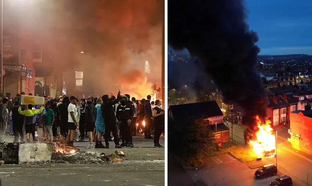 UK के लीड्स में जमकर दंगा हुआ, बड़ी संख्या में लोग शहर के बीचोबीच इकट्ठा हुए और उत्पात मचाया